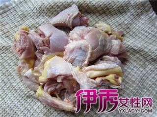 5 泡过的鸡肉用消毒茶巾或厨房纸吸干水分;