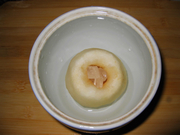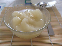 2、雪梨在蒸的过程中自己会出很多汁水,所以炖盅内加一点点水就可以了。