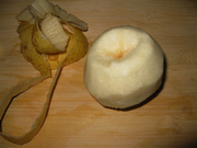 2 雪梨洗净削去外皮。