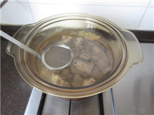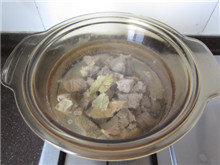 5 大火煮开,小火慢炖,中间撇去浮沫,加盖慢炖至牛肉熟烂,大约2小时;