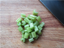 6 牛肉快煮好时,准备蔬菜:西芹切丁;