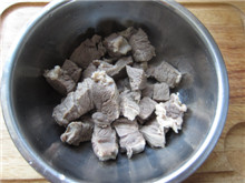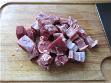 1 牛腩切块,稍大一点儿,让它塞进嘴里的时候感觉满满的、足足的;