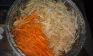 主料:红萝卜(3根)土豆(1根)面粉(3:1)