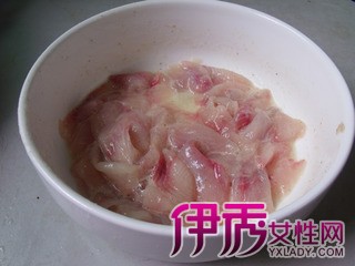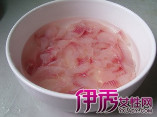 2,片好的鱼片,一定要用盐搓洗,盐可以让鱼片的水分掉一些,鱼肉紧致弹性好。不容易碎,洗净污水,换三遍水,鱼片成嫩白透明的为好。