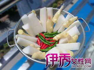 主料:萝卜(适量)、姜(适量)、辣椒(适量)