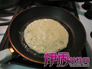 9 不粘锅里放油烧热,放入做好的面饼,两面翻一翻都粘上些油。