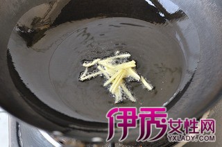 3 锅里倒入植物油,油热后放进姜丝爆香。