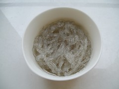 4、煮好的红薯粉放凉水泡一会捞出放碗里