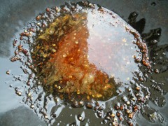 7、锅里放油,加入辣椒粉、豆瓣酱慢火煸出红油