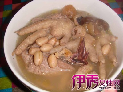 眉豆冬菇红萝卜鸡脚汤材料有,眉豆100克,冬菇50克,红萝卜250克,鸡脚3对,红枣5-10颗,生姜2-3片。下面我们再来介绍同样是女性养生、美容养颜的靓汤,花生眉豆鸡脚汤: