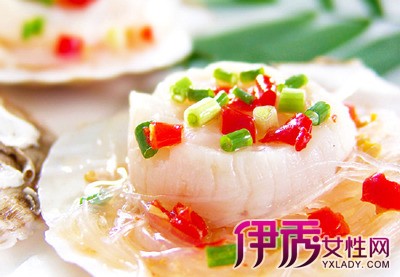 做法:1)将扇贝洗净,粉丝用凉水泡软后再用开水烫一下。2)把粉丝盘在扇贝里。蒜切碎后煸炒一下放在粉丝上3)把调料调成汁淋在粉丝上。开水入锅蒸八分钟取出4)锅中烧一些热油淋在上面即可食用。放上香葱和红椒末更。