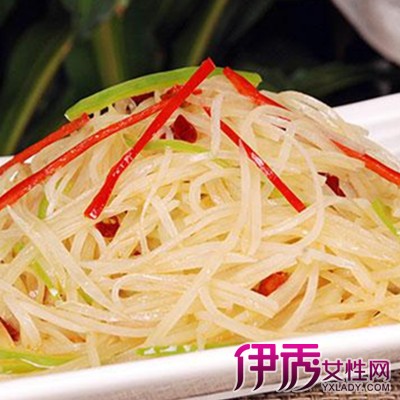 酸辣土豆丝是一道色香味俱全的汉族菜式。此菜是老百姓餐桌上最常见的家常菜。其主料土豆性平和胃,有改善肠胃功能、预防高血压的功效。辅料辣椒富含维生素。