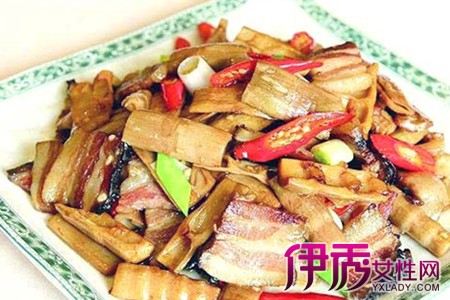 点评:这道春笋清粥,很容易使人联想起“春风又绿江南岸”的美妙意境。春笋本来味甘性寒,与江米烧粥,食之可通血脉,化痰涎,消食胀。