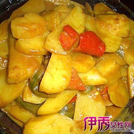 咖喱土豆为北京风味。主料是土豆,用咖喱做调料炒制而成。成品色泽金黄明亮,酥糯咸鲜适口。