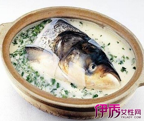 6、鲫鱼汤:250克重的鲫鱼几条,洗净后,先用素油煎至色黄,加生姜、葱、料酒、盐等调料,再放水3 碗,烧开后放点熟猪油,待汤发白即可食用,味道鲜美,而且对产妇下奶也有作用。