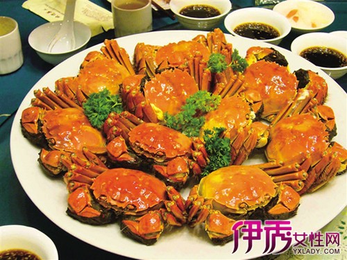 大闸蟹为中国久负盛名的美食。蟹中含有较多的维生素A,对皮肤的角化有帮助;对儿童的佝偻病,老年人的骨质疏松也能起到补充钙质的作用每年9-11月为生产旺季。