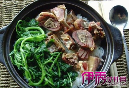 1、沙煲在底部抹薄薄的一层油,米洗干净。 米和水的比例:1:1.5 (这个比例很重要,关系到饭的生熟程度!太烂不好吃,夹生则根本没法吃!) 将米和水放入沙煲,用大火烧开。