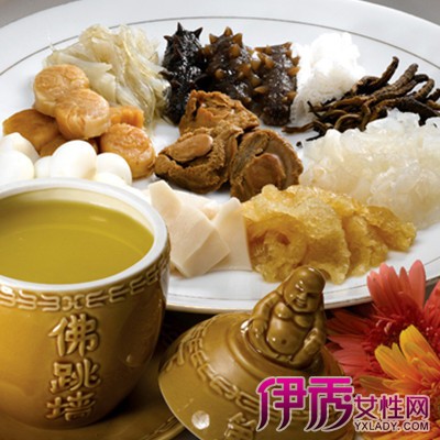 佛跳墙,又名满坛香、福寿全,是福建福州的汉族名菜,属闽菜系。相传,它是在清道光年间由福州聚春园菜馆老板郑春发研制出来的,佛跳墙富含营养,可促进发育,美容。