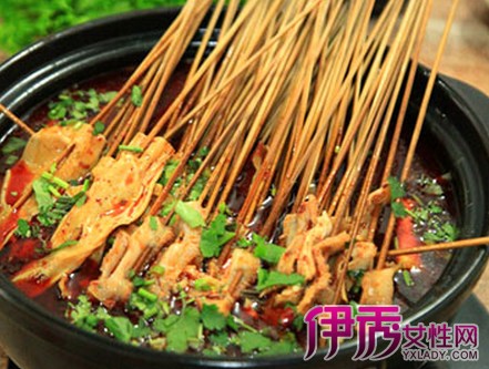 12.将串放入一深口钵内,浇入涮锅的汤,端上桌即可食用。