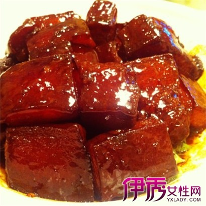 东坡肉:猪五花肋条肉 1500克 、绍酒 250毫升、姜块 50克、酱油 150毫升、白糖 100克、葱 50克,选用皮薄、肉厚的猪五花条肉,刮尽皮上余毛,用温水洗尽,放入沸水锅内汆 五分钟,煮出血水,再洗尽,切成20块方块。