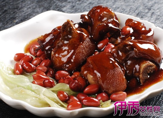 蹄髈中含有较多的蛋白质、脂肪和碳水化合物,可加速新陈代谢,延缓机体衰老,并且对于哺乳期妇女能起到催乳和美容的双重作用,另外具通乳脉,滑肌肤、去寒热、托痈疽、发疮毒、抗老防癌之功效,特别适宜于经常四肢乏力、两腿抽筋、麻木、消化道出血、失血休克及缺血性脑病患者食之。