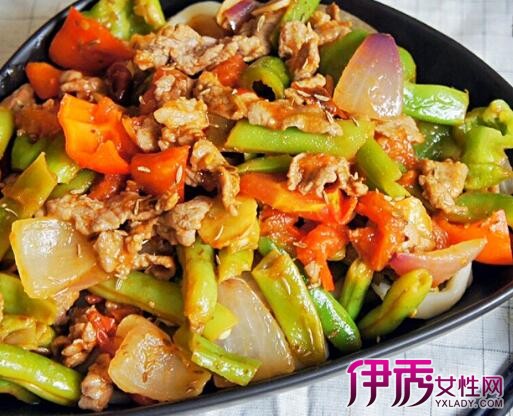 食用油(胡麻油最佳,油要多些)下锅七八成热,放人羊肉片过油,肉熟后捞出。再把鲜辣椒过油稍炸即过油捞出(芹菜、豆角、豇豆、茄子和圆白菜也需过油);锅留底油(有的地方会化一点酥油提味),放花椒和干红辣椒爆香捞出,依次放入洋葱块、大蒜末和西红柿煸炒(西红柿要半烂半不烂为好),加胡椒粉调味,再放入过完油的羊肉、鲜辣椒和其他时令蔬菜,翻炒片刻,加入盐和鸡精,翻炒几下将味调匀出锅装盘。