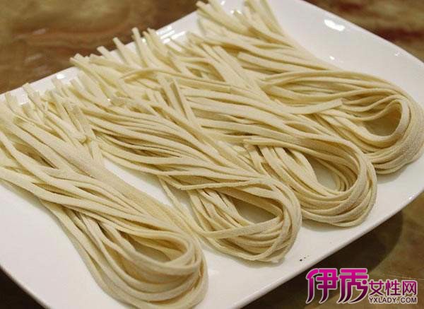 第二步、擀面条擀面条,这是妇女炊事中的绝技。用精白面粉制作。面的和法也是非常有讲究的,水要一点一点的倒,用筷子或手把面抄匀,注意水不能倒的太多,这样和出来的面叫伤水面,吃着口感不好,而且面也没有筋度。接着就是揉面,面一定要揉到“家”,至到揉的光光的,筋韧光滑、软硬适度的标准。再用细长光滑的红红的枣木擀面杖,慢慢地擀呀擀,一定要把面擀的薄且均匀。面擀开是一个圆,把面先对折,再对折,就成了一个扇形。从其中的一个边,用一个手压住面,另一个手握刀“犁”面,擀的面有多大,“犁”出的面就有多长。手艺好的女人切成的面条,薄如纸,细如丝,达到面薄条细。通常人们在过生日也吃这样的臊子面,称它为“长寿面”。
