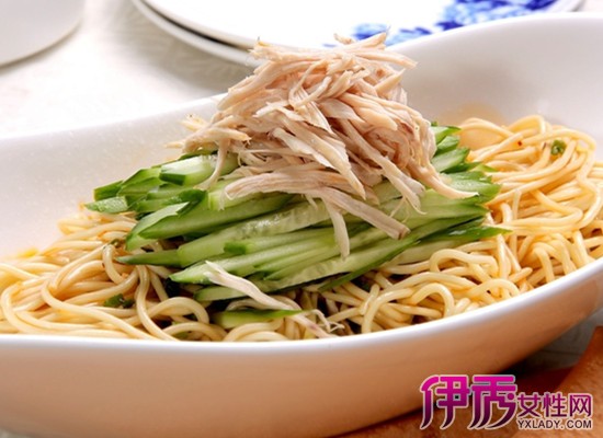 3.把酱油、精盐、鸡精、香油一同放在碗内,再放入过凉的面条,浇上玉兰片、冬菇即可。