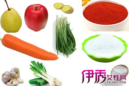 配菜:胡萝卜一根、韭菜一小束、梨三分之一个、苹果半个、葱白三根、蒜三瓣、姜一大块。