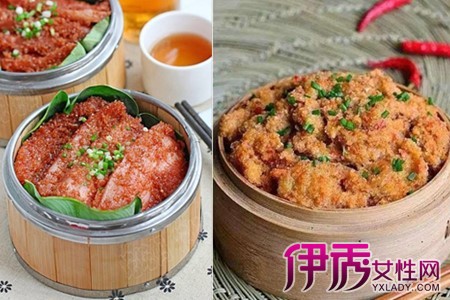 步骤六、加入食盐和辣椒油搅拌。步骤七、将粉蒸肉肉皮朝下整齐摆入碗中,步骤八、将水倒入锅中煮至沸腾,将摆好的粉蒸肉放入锅中蒸,蒸一小时以上就可以了。步骤九、将蒸好的粉蒸肉取出,找一个碟子将粉蒸肉倒装在碟子上,最后撒上几颗葱花就大功告成了。一道美味的粉蒸肉就做好了。如果你制作的粉蒸肉太干了,可能是因为肉太瘦了或者是因为蒸的时间不够长。而且,用高压锅的制作效果会更好,更能锁住水分。还可以在粉蒸肉的下面铺一些番薯、土豆等也是不错的选择。【女物原创未经允许,谢绝转载!】