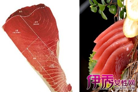 “刺身学问”之二:选肉。同样的,鱼是清楚啥鱼了,只是,该找鱼头还是鱼尾?鱼腹还是鱼背?外肉还是骨边肉?莫急,小编几句话就给您说清楚:其实除了极少部位外,按口味鱼的一身到处都有“刺身肉”的存在。先有肉肥而味鲜美的鱼腹,次之肉多肥少品味中正的鱼中部分,再有鱼背细腻的“鱼瘦肉”。这三种以脂肪含量区分的金枪鱼部分实际上并无排名之分,全看客官口味。