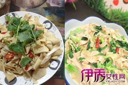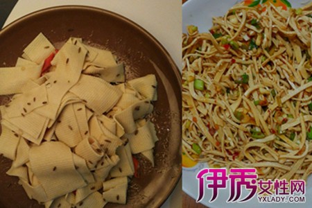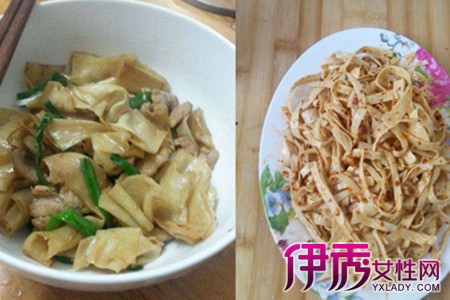 凉拌豆皮相信大家应该都吃过,将豆皮做成凉拌菜,不仅能够使得豆皮的营养价值更高,更有助于食欲的增加。首先将从市集买回的豆腐皮给切丝,然后将葱姜蒜给洗好,葱和香菜给切成段,在做这道凉拌菜时还可以根据自己的喜好加入胡萝卜丝和莴笋丝,然后加入盐香油、生抽、白糖、鸡精,喜欢吃辣的朋友可以放上油辣子以及小米辣。家常吃法还有炒豆腐皮,它的做法是将豆腐皮给切成丝,再将青椒和豆皮给炒熟,起锅之时加入葱段和盐、味精。这样的做法虽然十分的清淡,经常食用对身体也有一定的好处,是一道色香味俱全的美食。