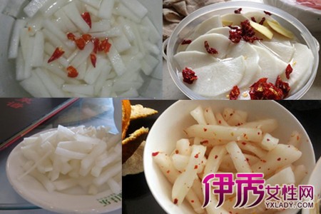 腌白萝卜则是比较简单的一种做法。该菜需要白萝卜、红辣椒、青辣椒、盐、白糖、白醋等食材。首先将准备好的白萝卜削掉皮,然后洗干净,将萝卜晾干水分,与此同时,将青辣椒和红辣椒切成一小段一小段的,把刚刚准备好的所有食材全部放入盆中,加入适量的盐,白糖以及白醋,就这么简单,这样的一道菜就做好了。白萝卜是营养丰富的一种食物,冬日里品尝可以提高人的免疫力。如果你想要做出一道完美的菜肴,一定要准确的掌握这种方法。【女物原创未经允许,谢绝转载!】