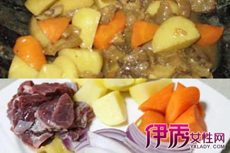 咖喱牛肉土豆是传统的印度泰国风菜肴,现在也被中国人所喜爱,除了因为做法简便,味道浓香辛辣让人食欲大增。先将牛肉切片,用料酒、酱油、淀粉、糖等腌制,把土豆、红萝卜削皮切块;往锅里放油,放入姜和葱爆香,将牛肉下过翻炒,颜色稍变,将土豆、红萝卜一起放进锅里炒,再加入盐、咖喱粉和酱油调味,加入适量的水,煮五六分钟即可关火装盘。香嫩细滑的牛肉搭配上浓醇辛辣的咖喱,让人闻到香味都食指大开,食欲大增,真是一道操作简单风味独特宜人的美味佳肴。【女物原创未经允许,谢绝转载!】