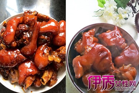 炒好的猪蹄转入炖锅,根据所选的炖锅来定炖煮时长,如果是一般的非高压电饭锅,炖煮时间为一小时到两小时,炖煮至一小时可中途加入适量的盐;如果是高压电饭锅,炖煮时长十五分钟左右,收汁的时候再加盐。炖好的猪蹄转到炒锅,最好是不粘锅,一般的铁锅会让汤汁变色发黑。大火加热收汁,非高压电饭锅炖的猪蹄加入些许鸡精,高压电饭锅炖的就加盐加鸡精,待汤汁粘稠即可出锅上桌。最后提示一下,炖煮时长还可根据个人喜欢的软烂程度来定。【女物原创未经允许,谢绝转载!】