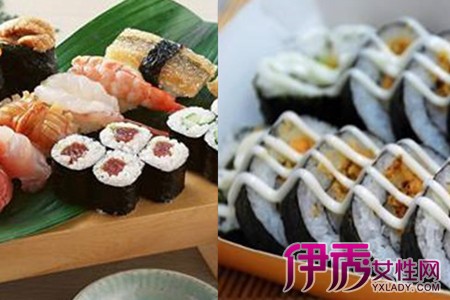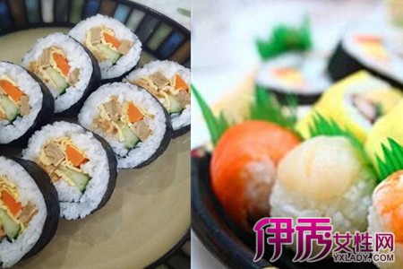 关于花样寿司就是要往寿司上面加上三文鱼或者吞拿鱼等材料,这样显得寿司更加丰富,三文鱼的肉质鲜甜嫩滑,如果接受得了生吃鱼肉的人,不妨可以尝试一下啊,蘸一点芥末酱真的很美味。不能接受吃生肉的人可以考虑做吞拿鱼寿司,口感上比较香。有时候我们也会选择用肉丝作为寿司的主要物料,小孩子十分喜欢肉丝寿司。我们在吃寿司的时候自然少不了酱料的搭配。一般情况下芥辣酱、酱油、醋是常见的酱料,我们可以选择混合搭配,只要蘸一点,寿司就美味无比。【女物原创未经允许,谢绝转载!】