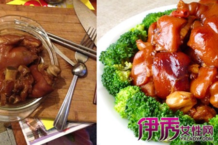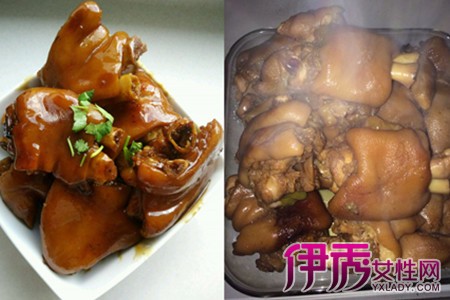 这道菜的做法很简单,无论是厨艺精湛的人还是厨房白痴都能够将这道美食很好地做出来。在做这道美食的时候,最关键的一点就是上色,所以在炒冰糖的时候一定要大火将冰糖给炒化。猪蹄当中含有大量的胶原蛋白,众所周知胶原蛋白对皮肤的美白以及抗衰老有很好的作用,所以常食猪脚的女性她的皮肤会越来越光嫩白皙。常食猪蹄除了对女性的皮肤有很好的表现之外,它对于经常换油是指疲劳,麻木、以及身体抵抗力不佳的人都有很好的作用。除了上述的这些功效以外,吃猪蹄对于女性还有丰胸的作用,所以这道美食是一道营养价值全面的菜品。【女物原创未经允许,谢绝转载!】