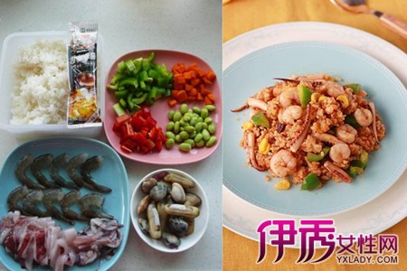 相信每个人都有如何解决家里剩饭的烦恼?大多数人都会选择在第二天用鸡蛋炒饭,简单又快捷。天天吃蛋炒饭的你一定也想要尝试做出更好吃又简单的炒饭来。小编给你支支招,让你做出比蛋炒饭好吃几倍的海鲜炒饭,对蛋炒饭say no!我们需要准备的食材有剩米饭、玉米油、虾仁、豌豆、胡萝卜、鸡蛋、咖喱粉、洋葱、鱿鱼等。