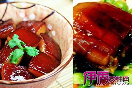 第二中做法相对于第一种做法来说稍微麻烦一点,一样是先准备五花肉、绍兴黄酒、老抽、生姜、大蒜等食材,接下来就可以开火了。首先要在锅里烧一锅开水,把猪肉放进去煮大概十分钟后捞出清洗干净,再切成7-8cm的方块,接着抹上酱油,再用热油炸一下是之上色,后用凉水冲凉备用,然后把肉皮朝下整齐的排在锅里,加入黄酒、生姜、大蒜等用小火慢炖约半小时,再把肉反转过来加点黄酒、老抽之类的再煮半小时直至肉烂熟即可出锅,后再撒上一点葱花上色即可。【女物原创未经允许,谢绝转载!】