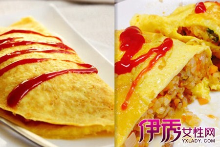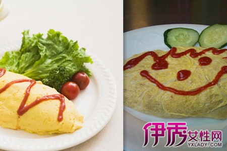 最后就是最重要的蛋皮的制作啦。事先把鸡蛋液搅拌均匀,还可以在鸡蛋液中加入一些淀粉,这样可以增加蛋皮的韧性,然后把锅烧热后倒入使用油,将油加烧到十成热,油放少许,倾斜转动锅,而且让油均匀粘到锅底,然后将鸡蛋液倒入锅中,使其均匀的铺到锅底,不要留空隙,火一直要保持小火,煎到鸡蛋液凝固后便可以出锅了。然后把蛋皮摊开,把炒饭倒上再包好,接着用番茄酱淋在上面,也可以用番茄酱画成自己喜欢的图案。这样好吃的蛋包饭就做好啦。【女物原创未经允许,谢绝转载!】