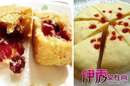 第二款:蔓越莓发糕准备材料:蔓越莓干 面粉 白砂糖 酵母 温水做法:蔓越莓干切成小粒备用,酵母粉加温水冲开,加入面粉搅拌均匀后加入白砂糖搅拌成面糊(白砂糖用量视口味而定)。加入切好的蔓越莓小粒,搅拌均匀。封上保鲜膜在室温里静待其发酵到原来体积的两倍。发酵完后,锅中加入水,用大火烧开,冒出蒸汽后把发酵好的面糊放进去中火蒸30分钟后就可以食用啦!小朋友对酸酸甜甜的蔓越莓干是毫无抵抗力的,蔓越莓发糕是小朋友早餐的不二选择!