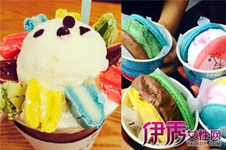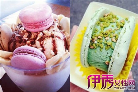 于是,马卡龙冰激凌就成了网红级的甜品,它不仅拥有可爱而鲜艳的颜值,味道也香甜可口不发腻,不火都不行。马卡龙冰激凌有许多款式,一种是把冰激凌做成圆柱形或棱柱形的夹心,另一种是直接把马卡龙弄成小块放在冰激凌上面做装饰,有的冰激凌还会撒上奥利奥,棉花糖,彩针等小玩意做装饰,看起来就像是一座梦幻的糖果城堡,真是看起来好看,吃起来还好吃,自然能够让人心情变好。不过,想要减肥的MM可不能放纵自己,比较马卡龙和冰激凌的热量都是很高的。【女物原创未经允许,谢绝转载!】
