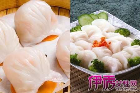 压轴的要数是虾饺了,做法不易,是最多人喜欢吃的点心之一,虾仁处理好,压成泥,加少许肥肉,马蹄出水后切成小粒,把虾仁、肉泥、马蹄放在碗里,加少许料酒,加适量盐和姜汁,加少许白糖,胡椒粉和鸡汁,顺同一方向搅拌均匀成馅料,用粘米粉和糯米粉混合按2:1的比例加入70度的热水,一边搅一边加水,直到糊状加入少许油和盐揉成粉团搁置5分钟,胡萝卜切片,垫底最好的面要是热乎的开始,取10克左右的粉团,撮圆,用力压一下,转的时候要用力均匀。一个面皮就好了,再用刮板铲起,放上适量的馅料,做法就像包饺子一样,把包好的虾饺放在胡萝卜片上,待锅里水开后,放上蒸笼蒸6分钟就可以了。【女物原创未经允许,谢绝转载!】