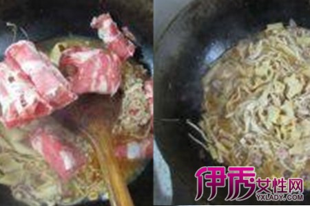 六、锅内倒入适量开水(可用高汤),把刚刚处理过的金针菇和红薯粉倒进锅里;
