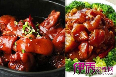 第六步:放入适量的冰糖在锅内,中小火煮至冰糖融化后倒入猪蹄,翻炒至猪蹄上色均匀后加入料酒、生抽、老抽再次翻炒。第七步:重新放入炒好的调料翻炒一下,加入适量的热水直至没过猪蹄,换大火将猪蹄烧开后转小火煮大约75分钟后适当尝一下味道,如果觉得不够咸就加一点酱油后煮开收汁即可起锅上盘。一道色香味俱全的红烧猪蹄就做好了。虽然做这道菜费时较长,可是当你尝到味道后就会觉得一切都值得了。可能你们会觉得要炖75分钟太久了,可是如果想将猪蹄煮至入味好吃就必须要有足够的时间去让它吸收汁水,下厨的乐趣就在于将面前的食材变成一道美食,看了这么久,你们心动了吗?快点动手去创造属于你的美味吧!【女物原创未经允许,谢绝转载!】