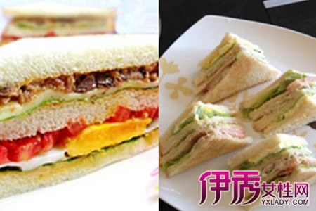 今天给大家介绍到的是金枪鱼三明治,这样的吃法,完完全全保留了金枪鱼的营养价值还有它本身的鲜嫩,而且这种吃法,不会使不爱直接生吃的人接受不了。是一种很好的食用方法。那么,准备好面包片,一起开始了。将用酱油,盐,料酒腌制好的金枪鱼肉取出,切碎。红色的柿子椒还有酸黄瓜切成细丁,然后将之间的金枪鱼肉和柿子椒还有酸黄瓜均匀搅拌,再加入少许的沙拉酱搅拌好待用。将面包片铺好,将金枪鱼酱铺满面包片,然后挤上番茄酱, 沙拉酱,放上生菜就可以了。【女物原创未经允许,谢绝转载!】
