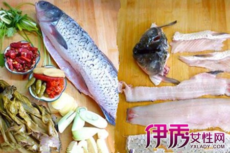 首先,将鱼鳞内脏都除去并洗干净。切开鱼头放置一边,然后将两侧的鱼肉切下成长条状,在将长条状切成片,记住要将刀斜着切会让鱼肉更薄,薄的鱼肉片会更加入味,当然这也是很考验一个人的刀功,需要长时间的锻炼才能切好。然后剩下的部分就可以和鱼头放在一起,可以一起做一顿鱼头汤喝。而将酸菜切成段,大约三四刀即可,不必切得太碎。