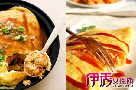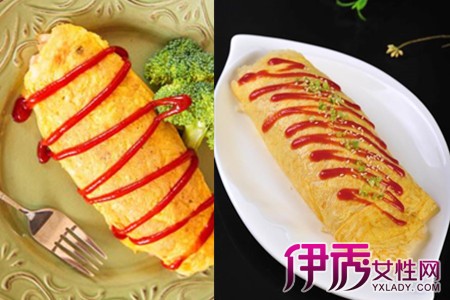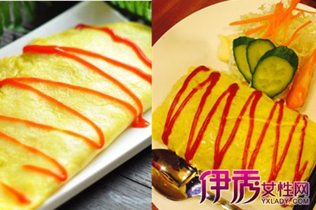 把锅洗净擦干水分,继续加热,倒入少许食用油,油温升高至七八成热,即可倒入鸡蛋液,并转小火,,用筷子把鸡蛋液迅速搅匀,一边搅拌鸡蛋液一边转动锅子,使之摊成蛋皮,接着把炒好的米饭倒入蛋皮中,用锅铲把蛋皮向中间包起,接着把蛋包饭推到锅边,把蛋包饭反扣在干净的盘子上,刚倒出的蛋包饭形状还不是很好看,我们可以用厨房纸给它塑型,之后,淋上一些番茄酱装饰一下,配上一些蔬菜,一份日式蛋包饭就大功告成!轻轻地划开蛋皮,美味就从此刻开始了,有没有垂涎欲滴呢?你也回家做一份满足一下自己的味蕾吧!【女物原创未经允许,谢绝转载!】