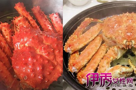 做法二:清蒸帝王蟹。这种方法简单一些,也更原味一些。不过帝王蟹要是活的,就是将帝王蟹用刷子洗刷一下,然后放入蒸笼大火蒸15分钟,小火蒸3分钟,期间准备陈醋和姜等蘸料,等帝王蟹蒸熟以后就可以和着蘸料一起食用啦!怎么样是不是跃跃欲试了呢?【女物原创未经允许,谢绝转载!】