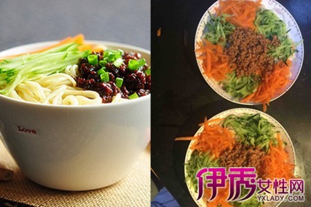 然后开始重要的炸酱步骤,将五花肉切成适中的大小,在肉中加入生抽、糖、少许胡椒粉、绍兴酒、一点点油腌制十分钟左右,往热锅里倒入大量的油,将油加热至七成热,倒入五花肉翻炒,出锅前倒入香料(葱、辣椒、蒜蓉等),根据自己的口味调配)翻炒,加入大量的黄豆酱,放入适量的水,煮到成浓稠的酱汁,芳香四溢,试味后即可出锅备用。将黄瓜跟胡萝卜切成丝状,在面条淋上炸酱,加入清新的黄瓜胡萝卜,美味的炸酱面上桌啦!【女物原创未经允许,谢绝转载!】